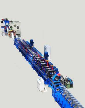 1.貨架立柱冷彎型鋼設(shè)備包括液壓開卷、校平、送料、沖孔、成型、剪切、出料。控制采用西門子PLC,貨架立柱生產(chǎn)線,觸摸屏輸入,自動(dòng)化程度高、操作方便、生產(chǎn)效率高,整線生產(chǎn)速度可達(dá)到40m/min。